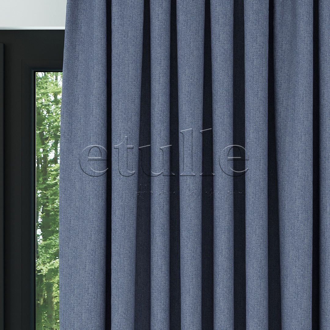 Lacivert Keten Desen Efekli Dökümlü Fon Perde | Ezri