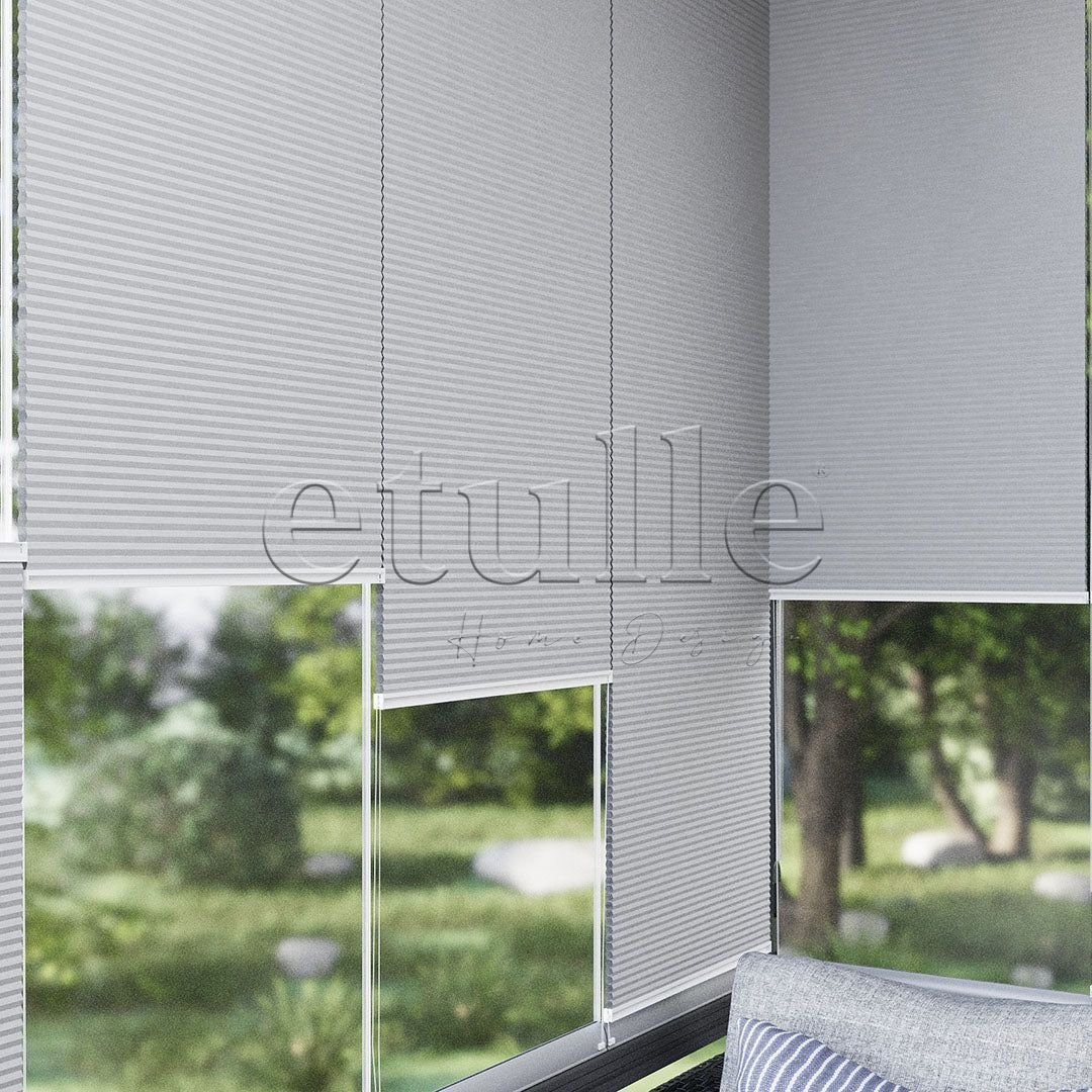 Honeycomb Plise Perde, özel bal peteği dokusuyla enerji verimliliğini artırırken, estetik açıdan dikkat çekici bir görünüm sunar. Bu benzersiz yapısı, odanızda termal konforu destekler.