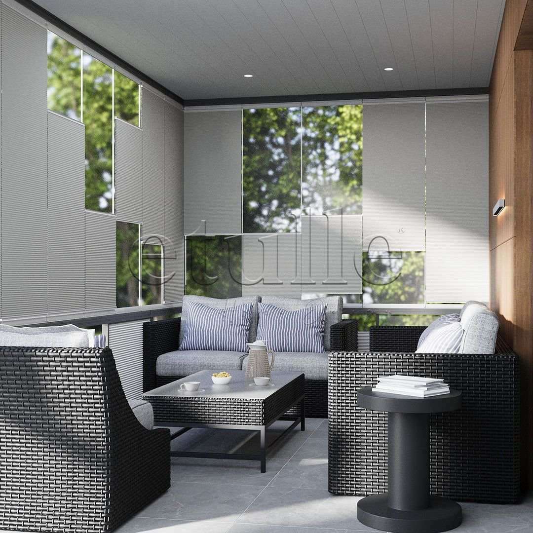 Honeycomb Plise Perde, özel bal peteği dokusuyla enerji verimliliğini artırırken, estetik açıdan dikkat çekici bir görünüm sunar. Bu benzersiz yapısı, odanızda termal konforu destekler.