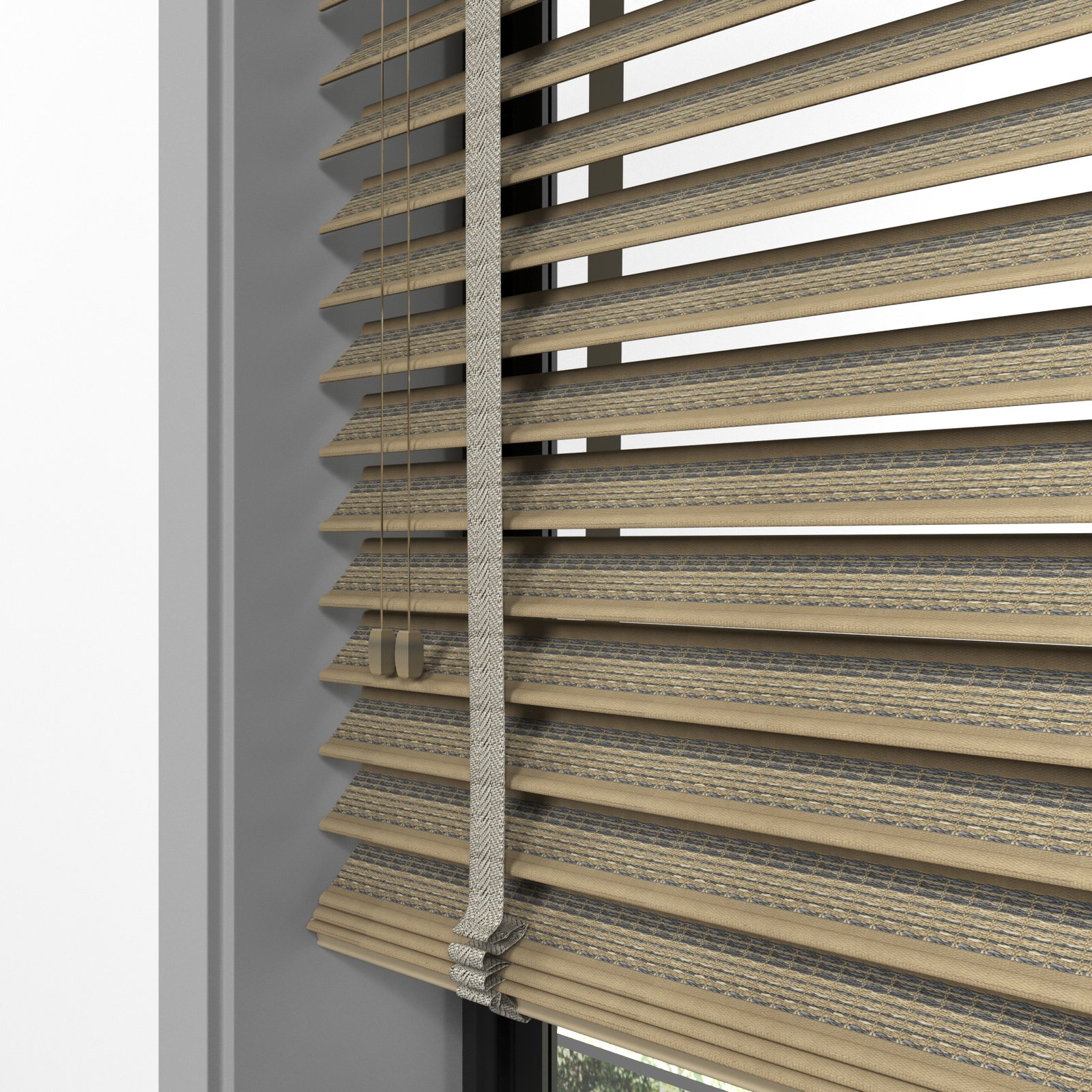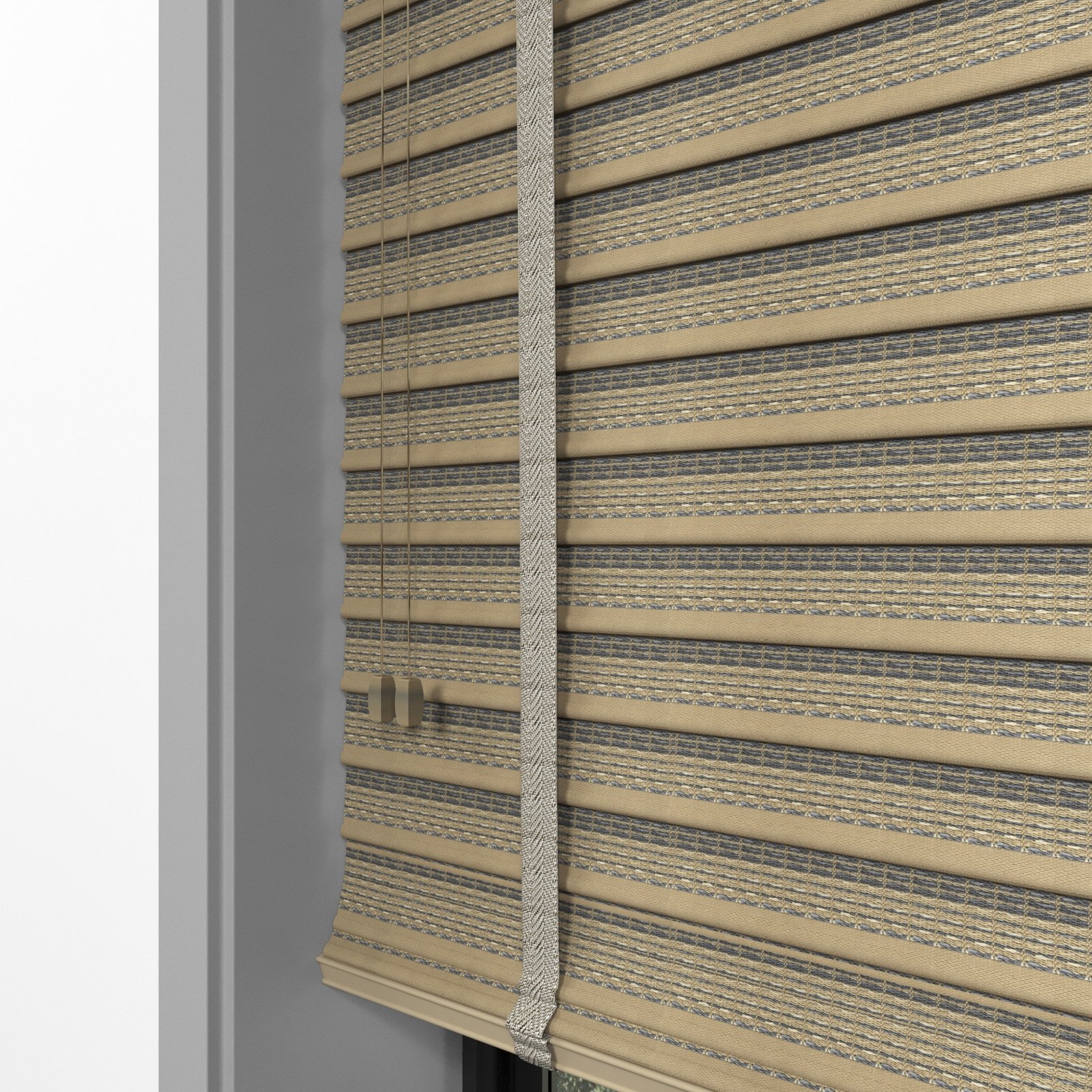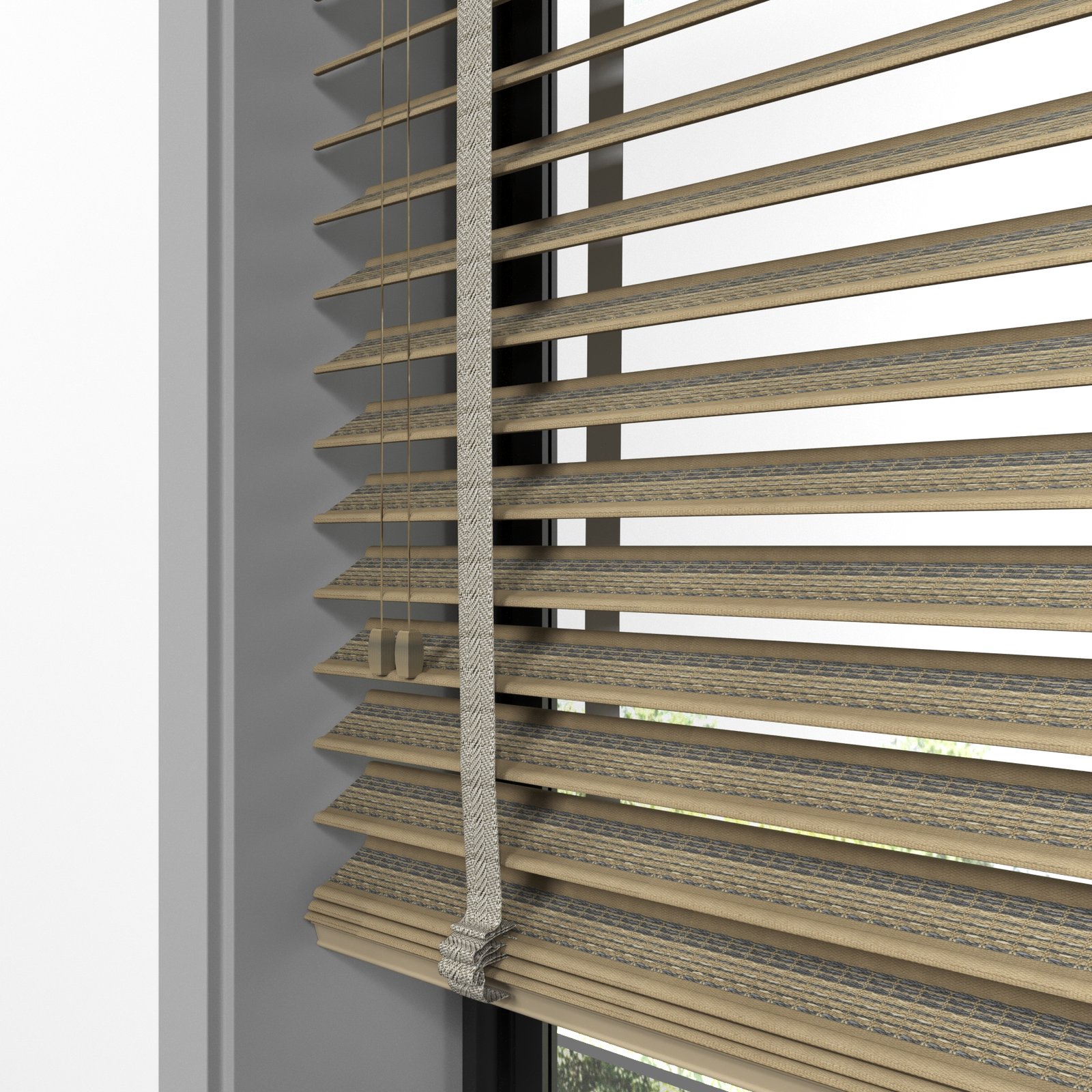 50 mm Hasır Antrasit Şeritli Kahve Kumaş Jaluzi