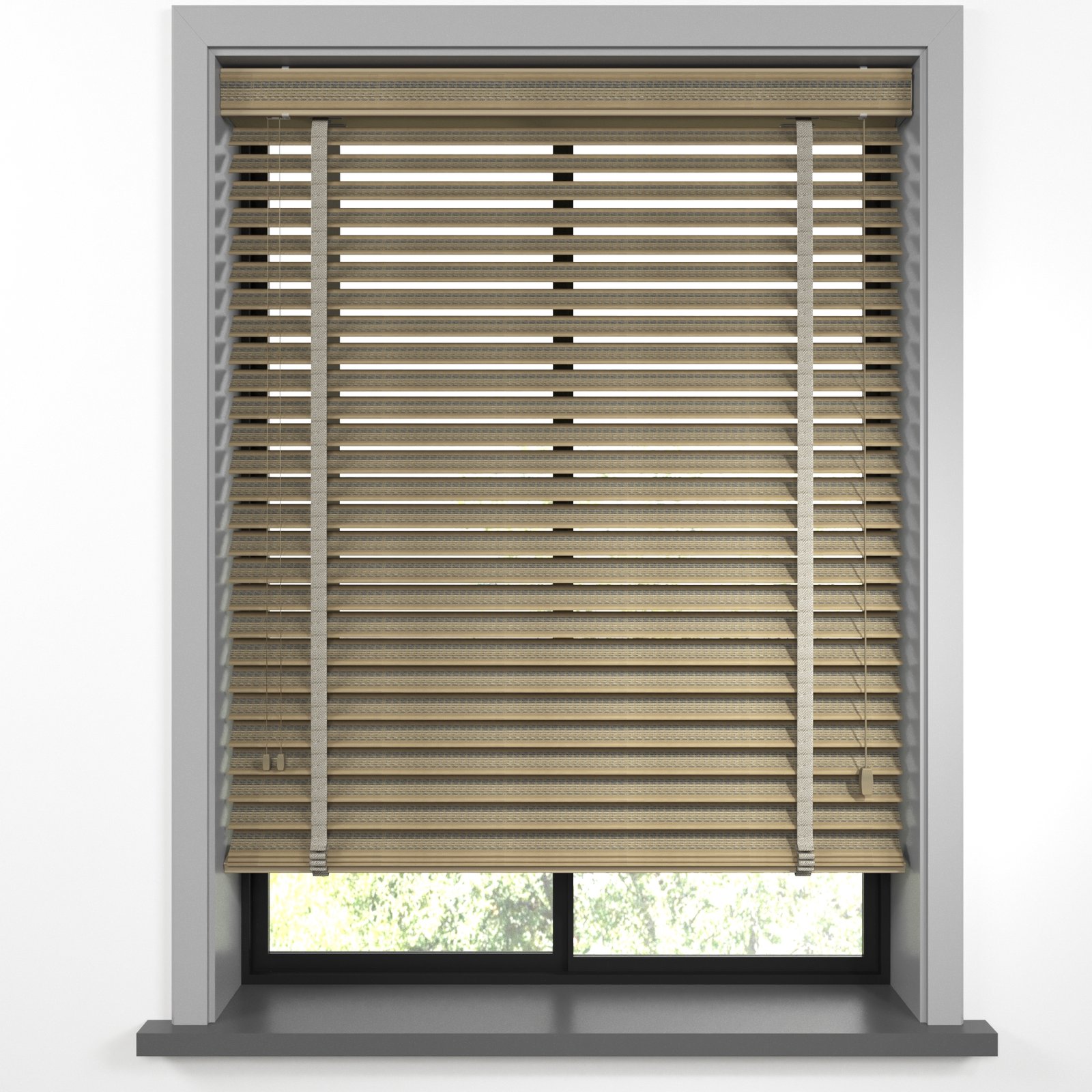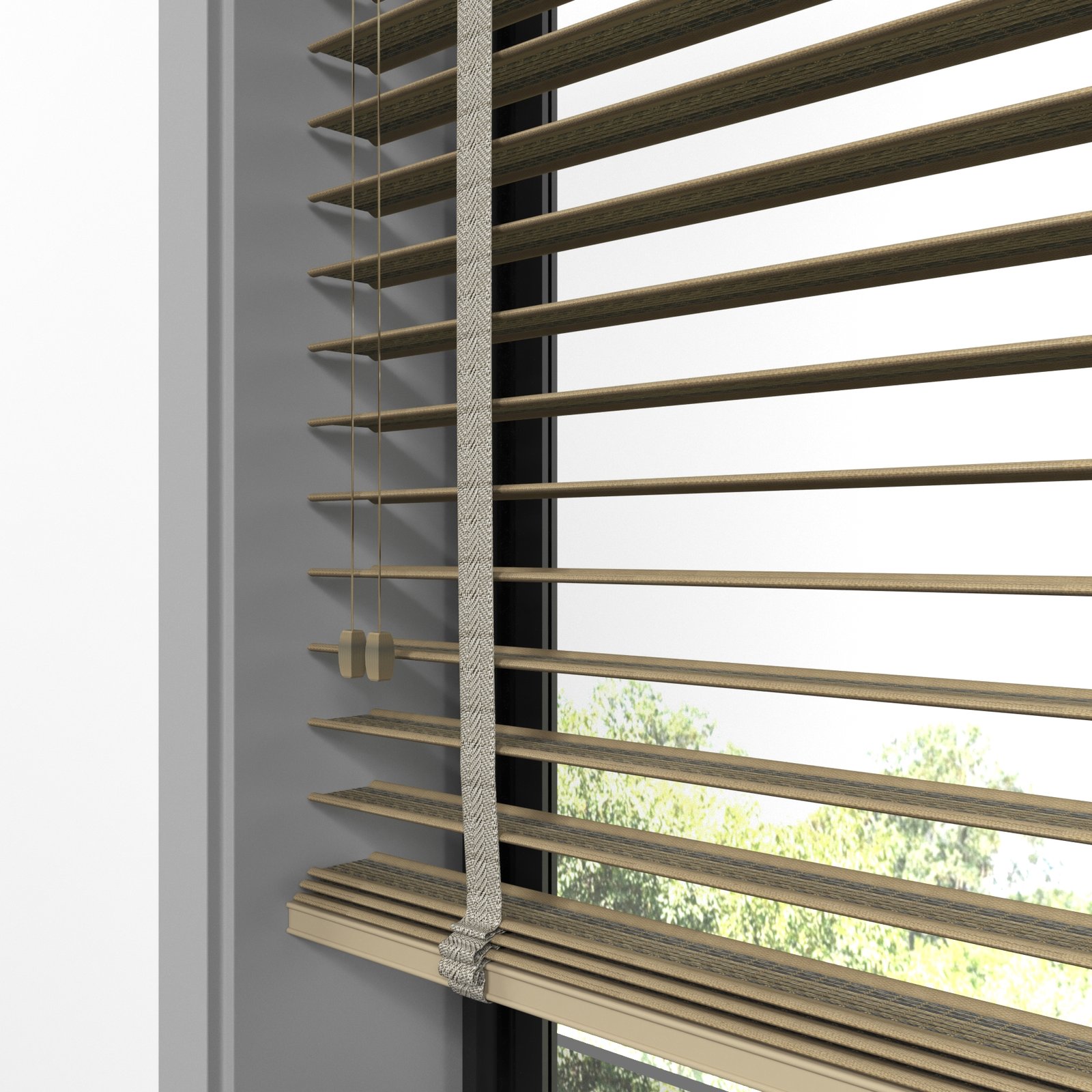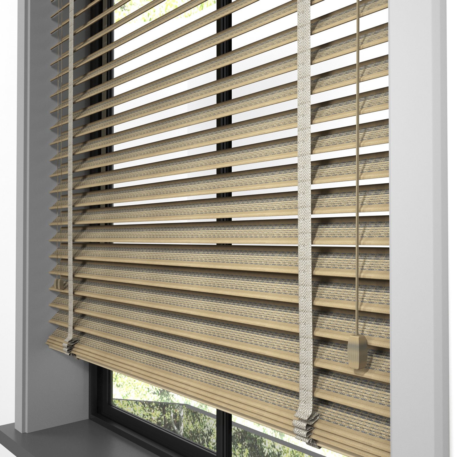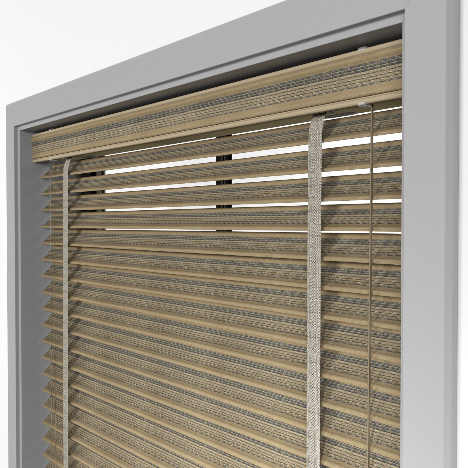 50 mm Hasır Antrasit Şeritli Kahve Kumaş Jaluzi