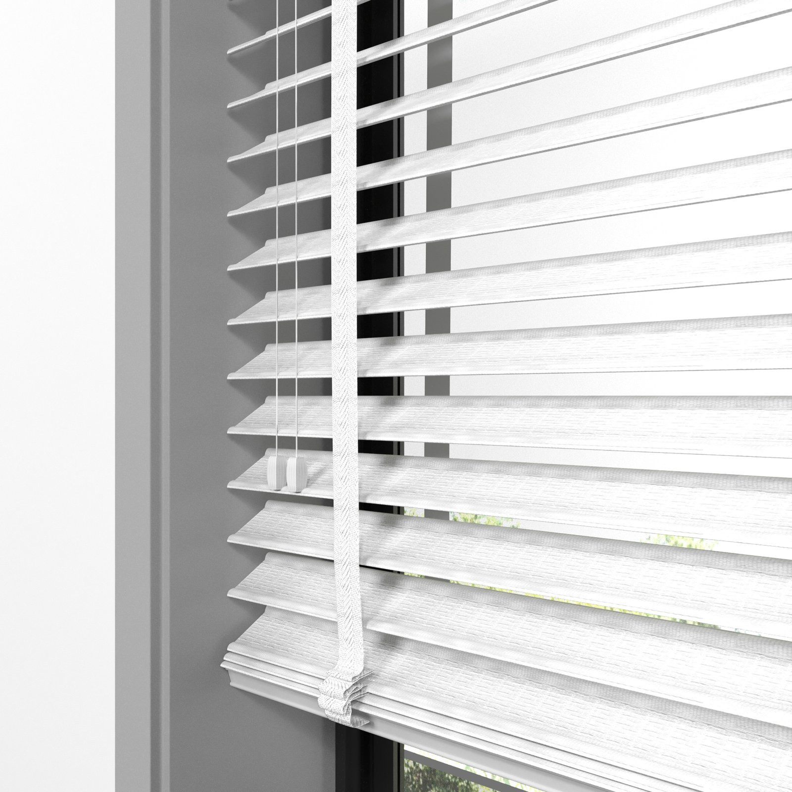 50 mm Hasır Dokulu Beyaz Kumaş Jaluzi