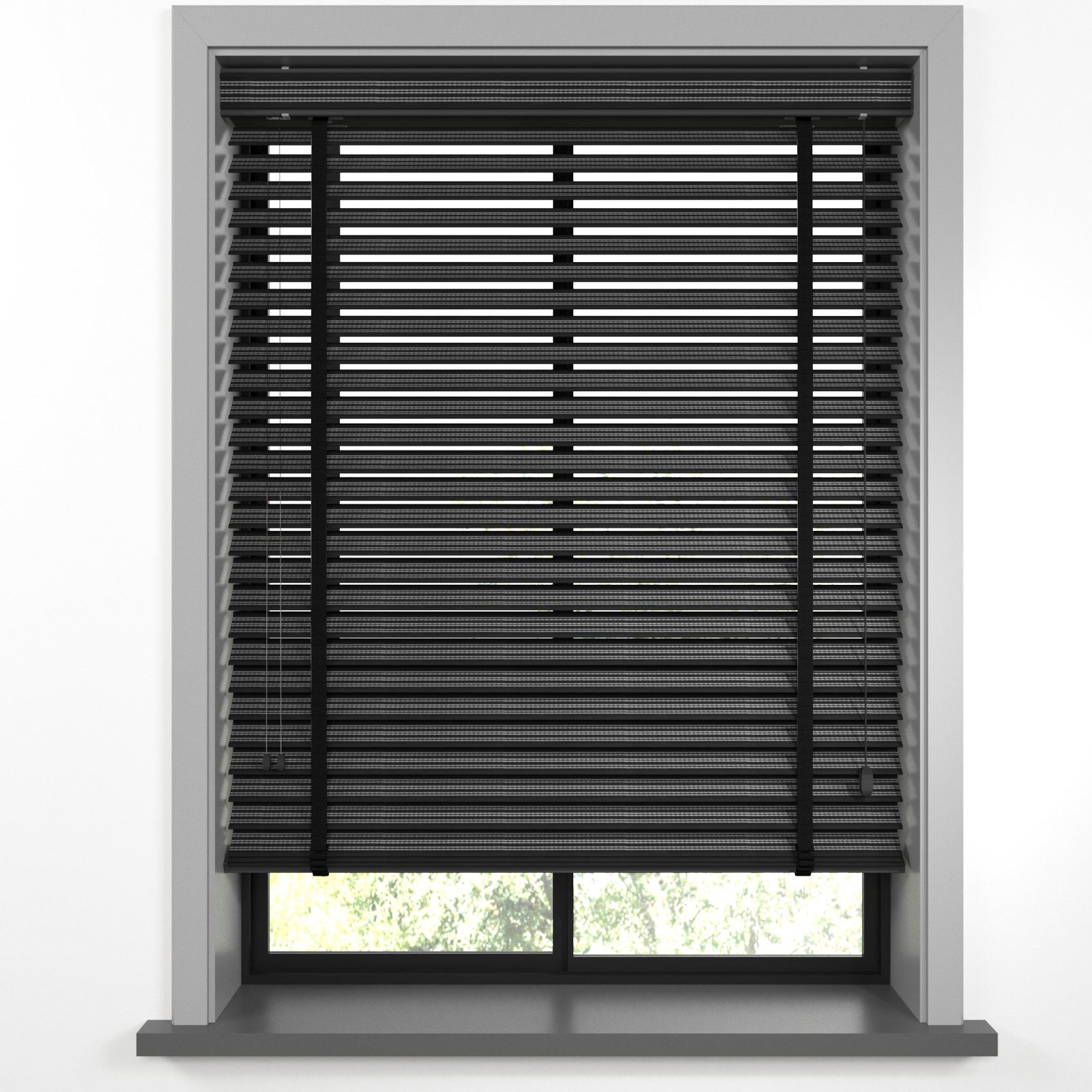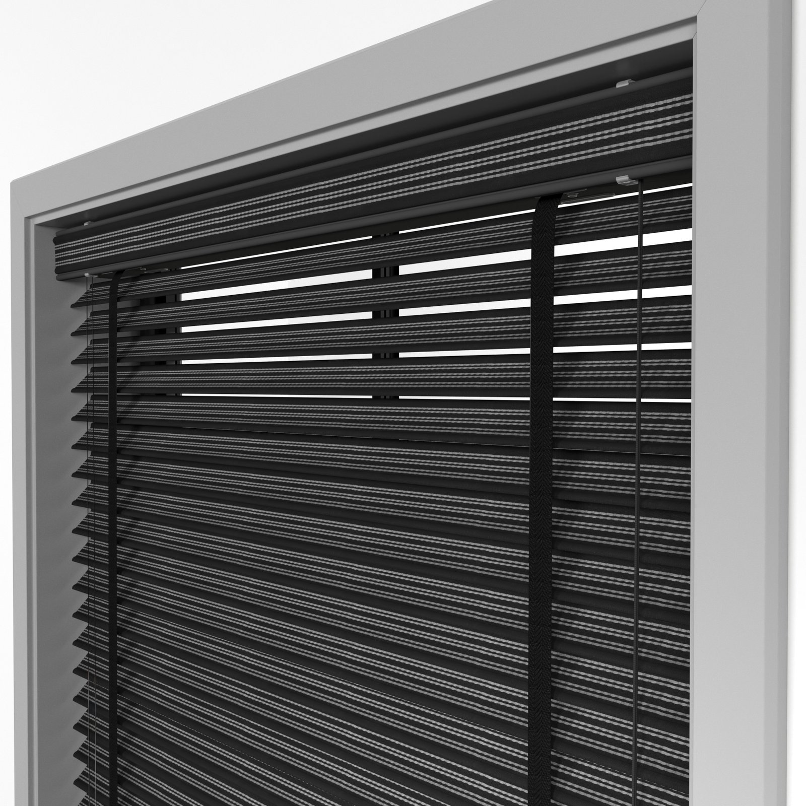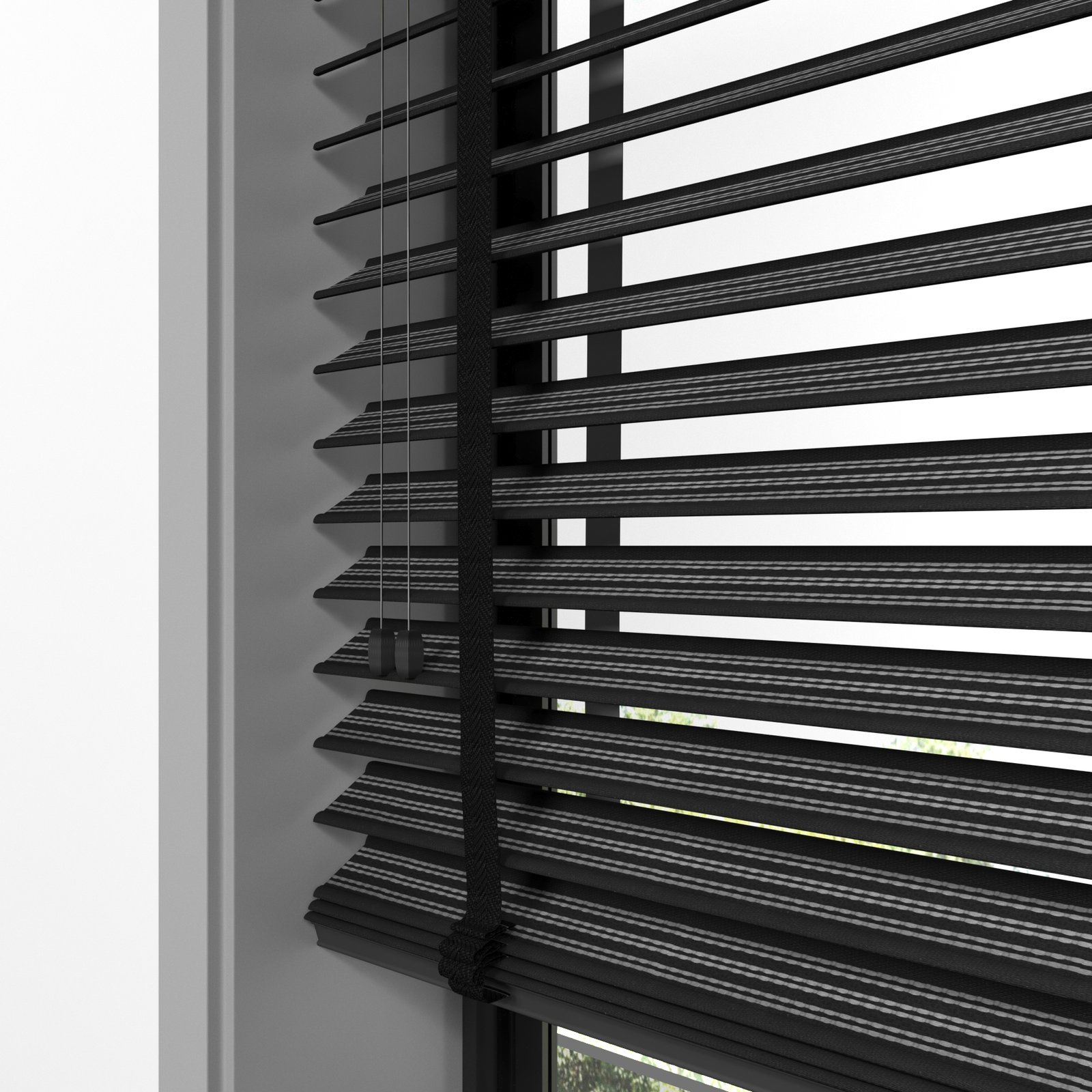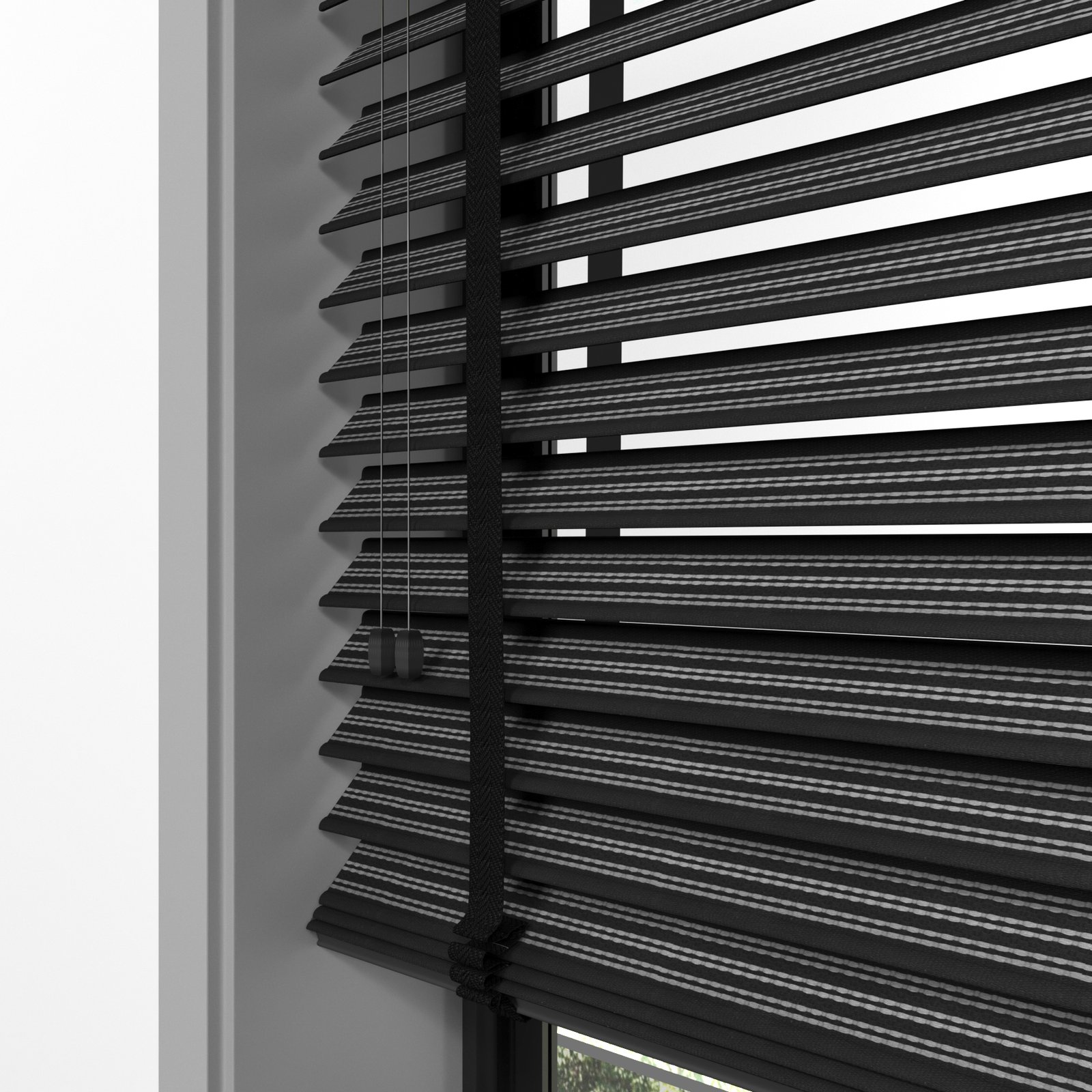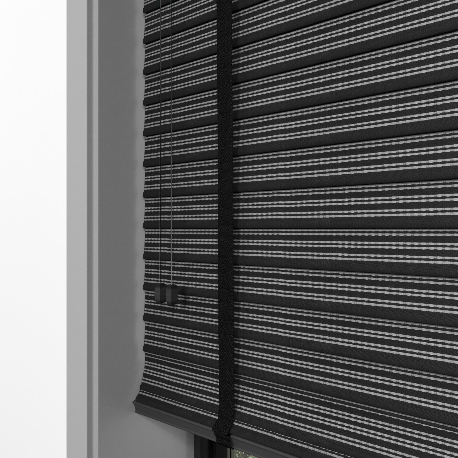 50 mm Hasır Gri Şeritli Siyah Kumaş Jaluzi