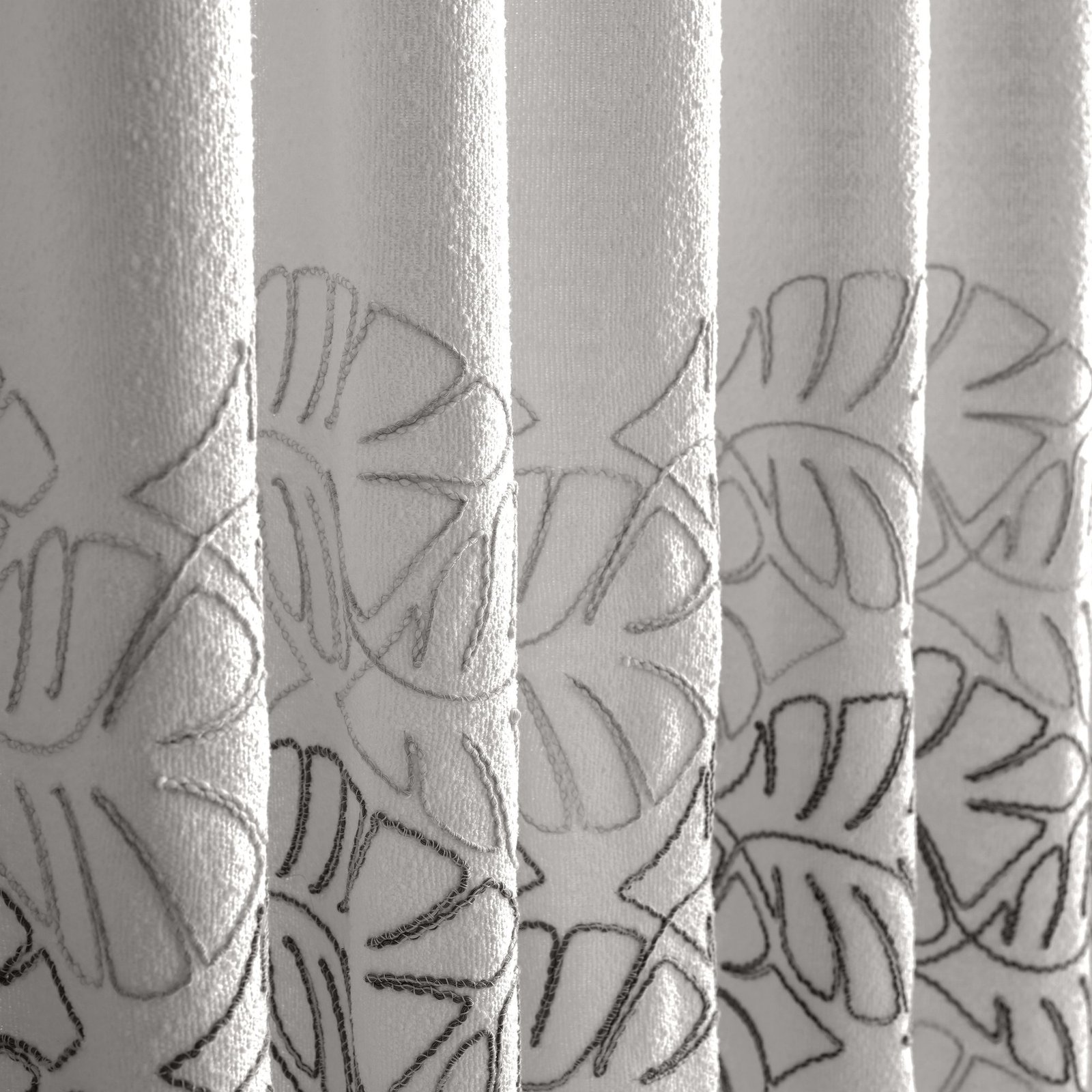 Açık Gri Yaprak Nakış Desen Fon Perde | Silva