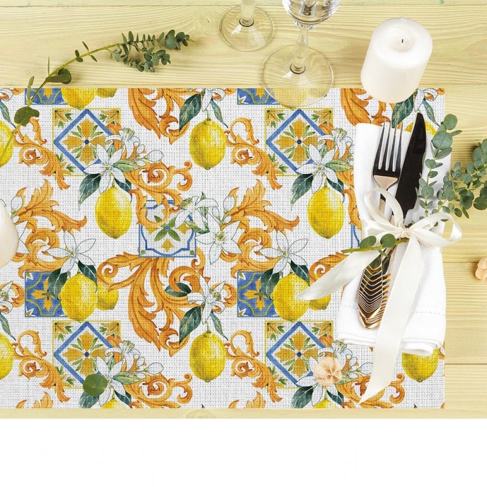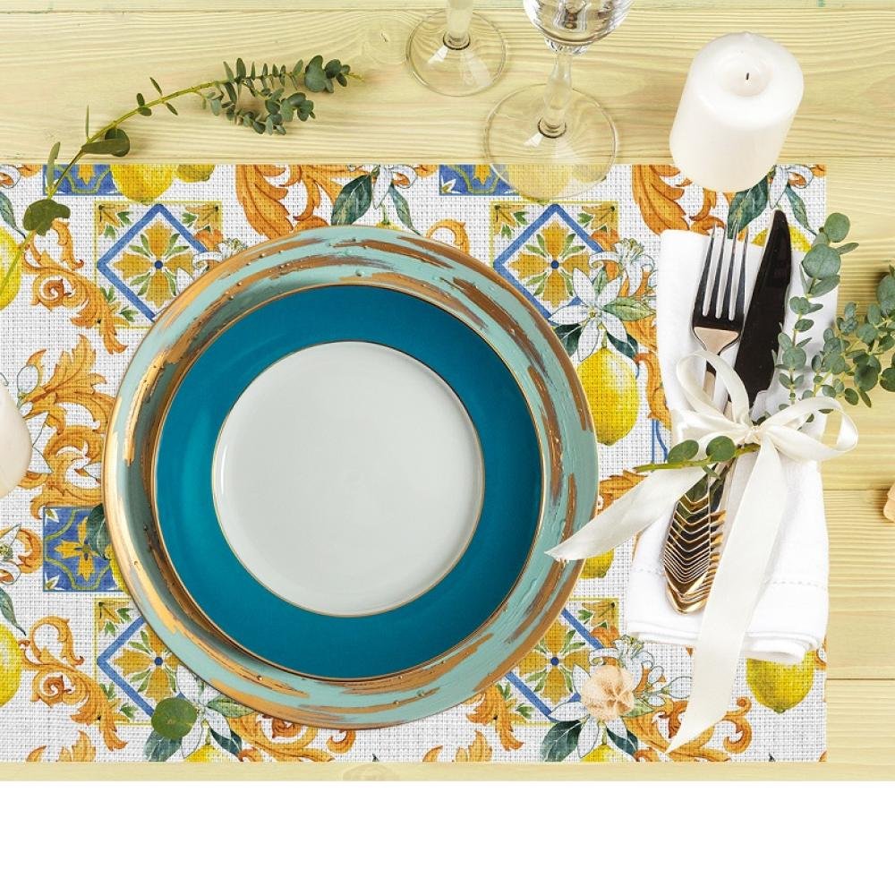 Akdeniz Esintili Seramik ve Limon Desenli Amerikan Servis Takımı – 4’lü Set (35X50 cm)
