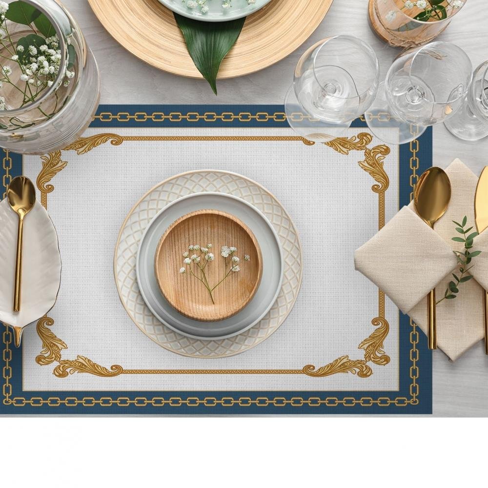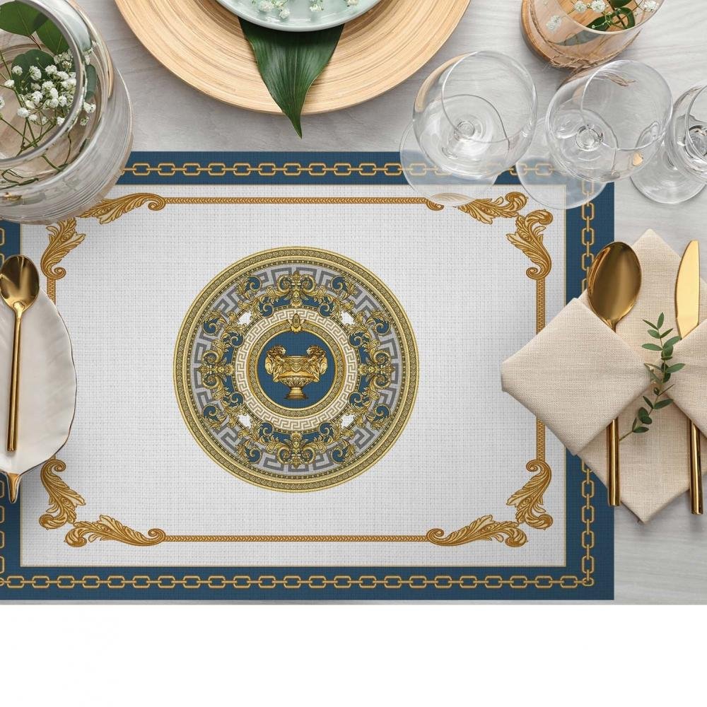 Barok Desenli Altın Mavi Lüks Amerikan Servis – 4’lü Set (35X50 cm)