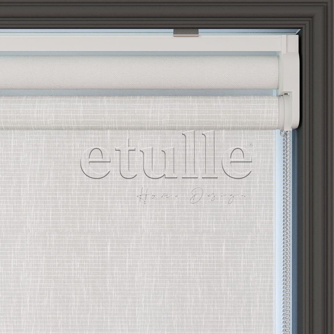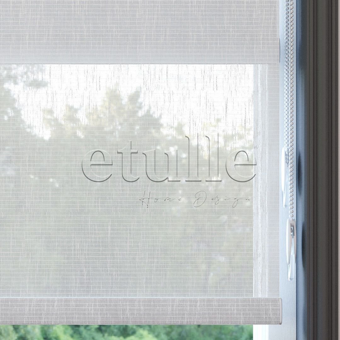 Beyaz Desenli Çiftli Stor Perde | Estella