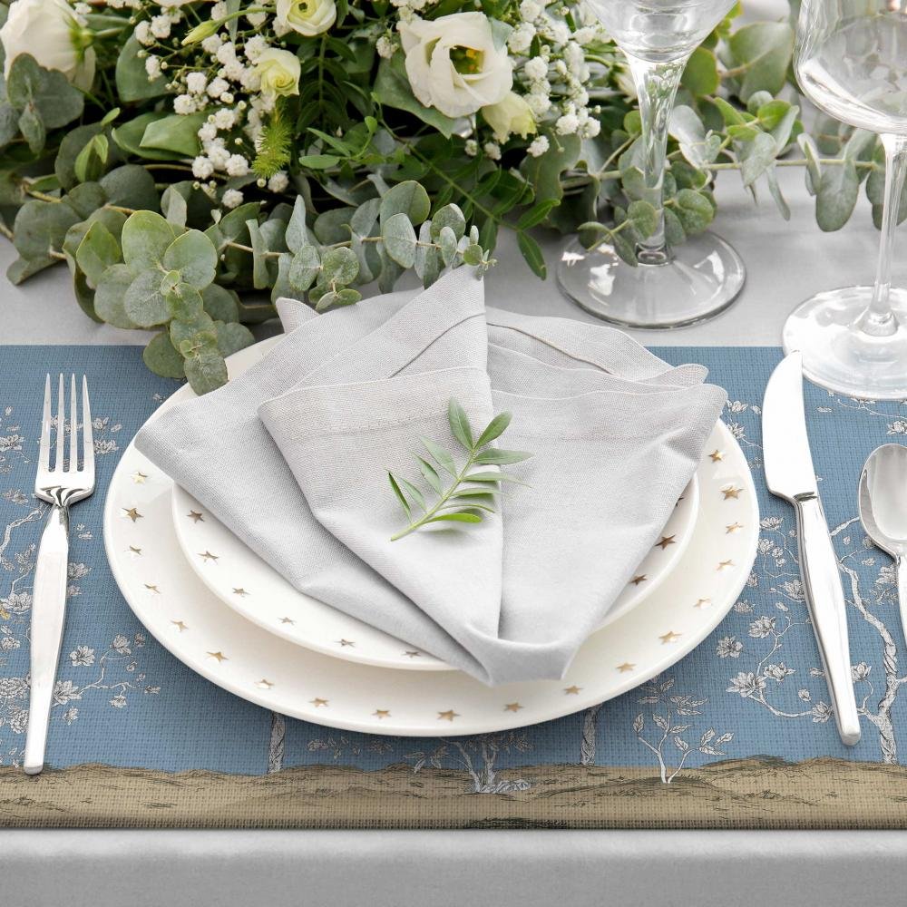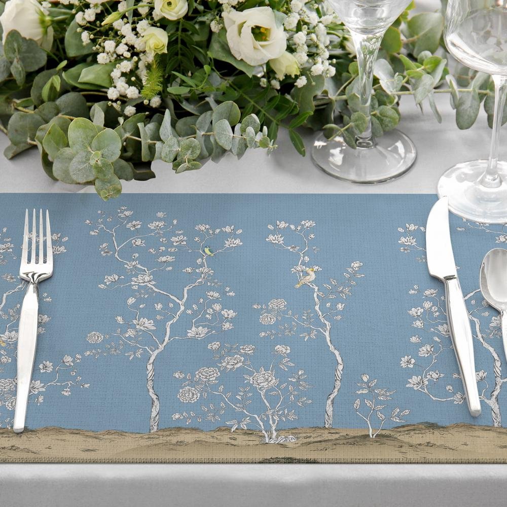 Çiçek Tasarımlı Mavi Kumaş Amerikan Servis 4’lü Set 35X50CM