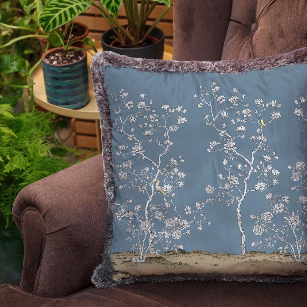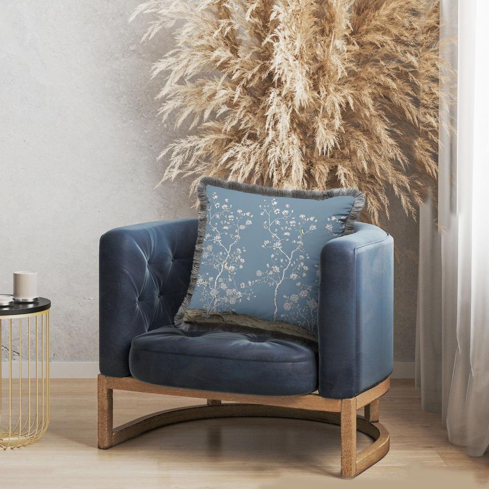 Çiçek Tasarımlı Mavi Yastık – EY314