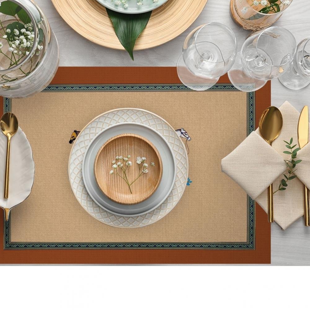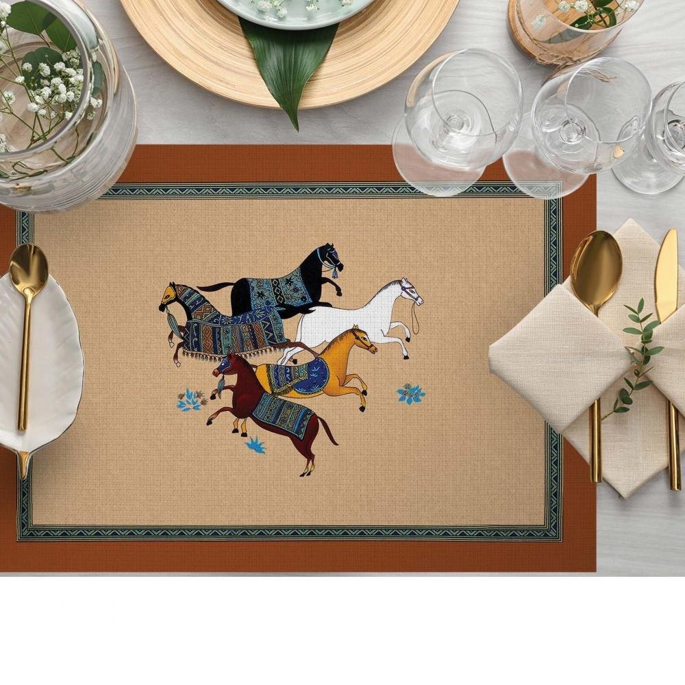Dekoratif At Figürlü Amerikan Servis – 4’lü Renkli Etnik Desen, 30×50