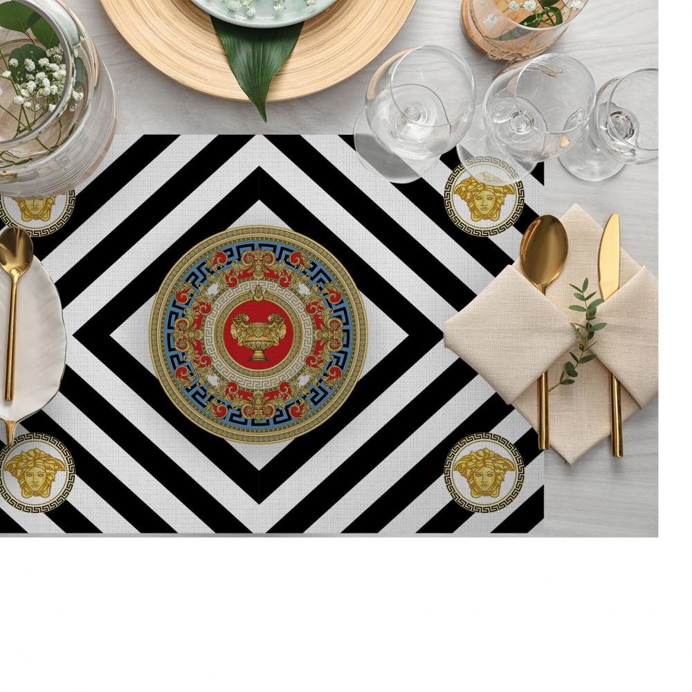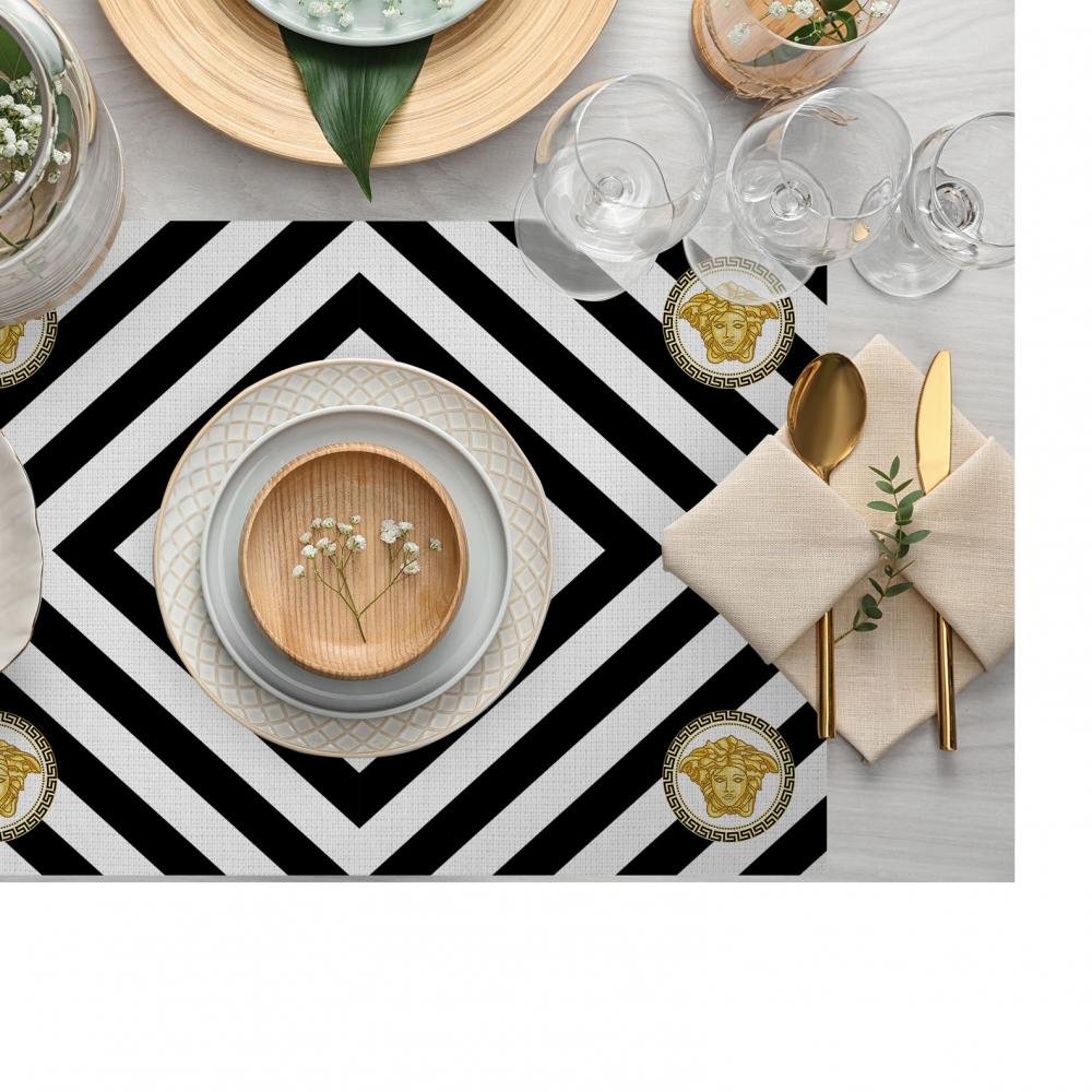 Geometrik Çizgili ve Barok Figürlü Premium Amerikan Servis – 4’lü (30×50 cm)