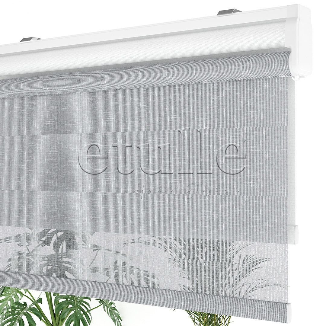 Gri Desenli Çiftli Stor Perde | Floris
