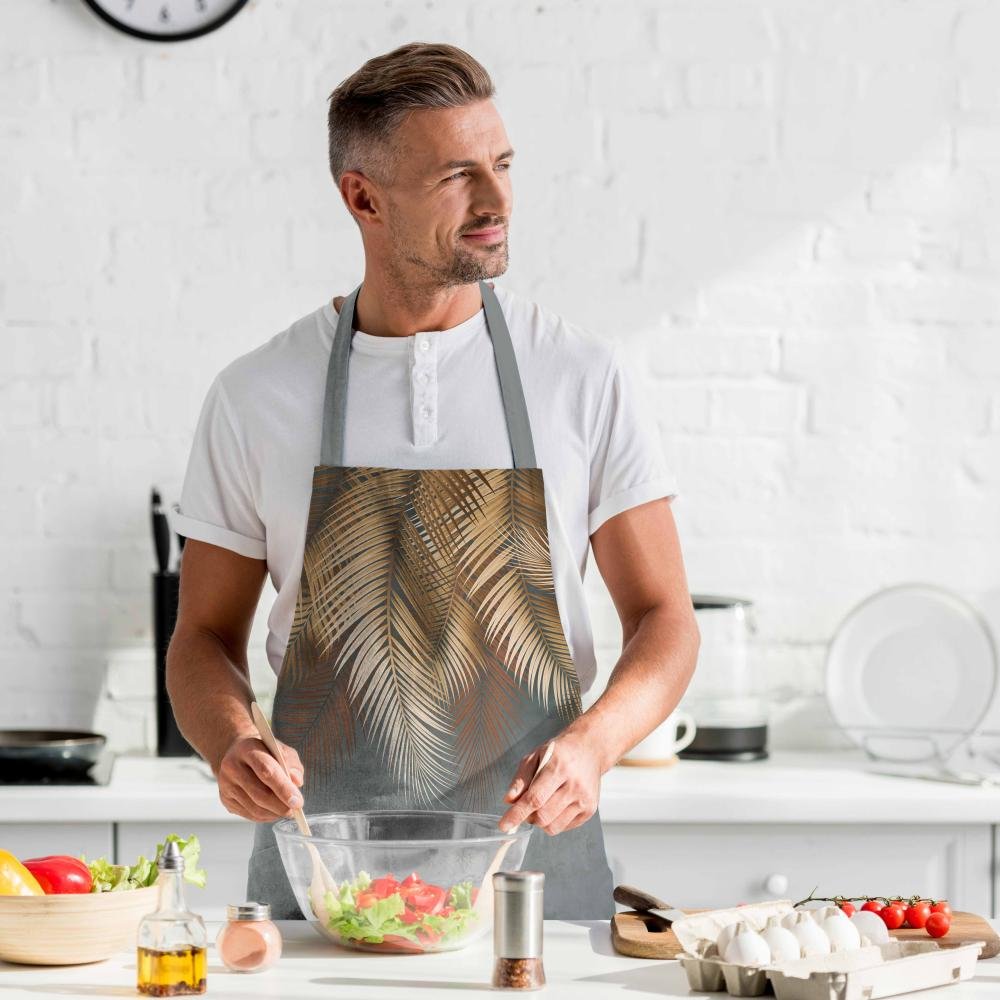 Kahverengi Palmiye Yaprak Detaylı Mutfak Önlüğü