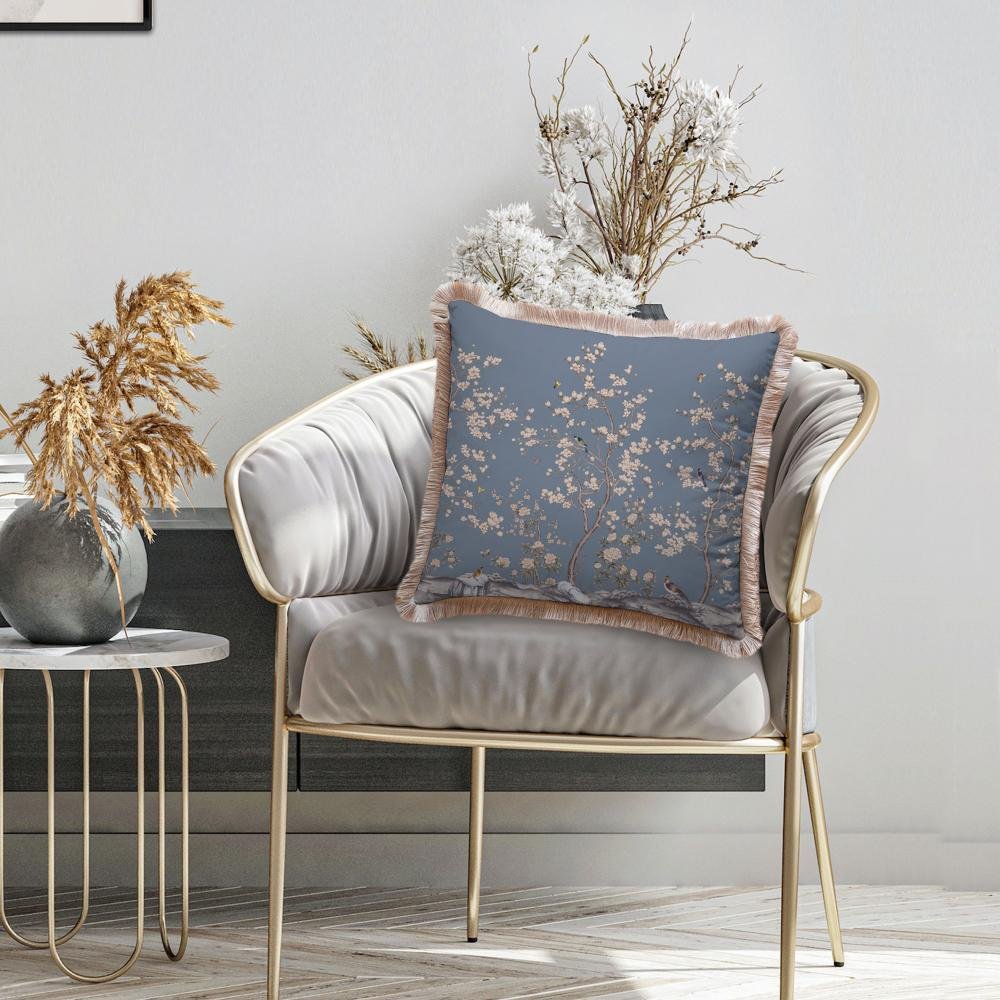 Mavi Çiçek Tasarımlı Yastık – EY304