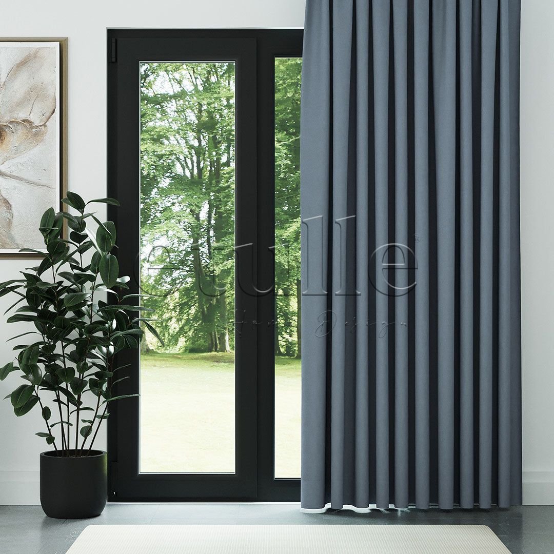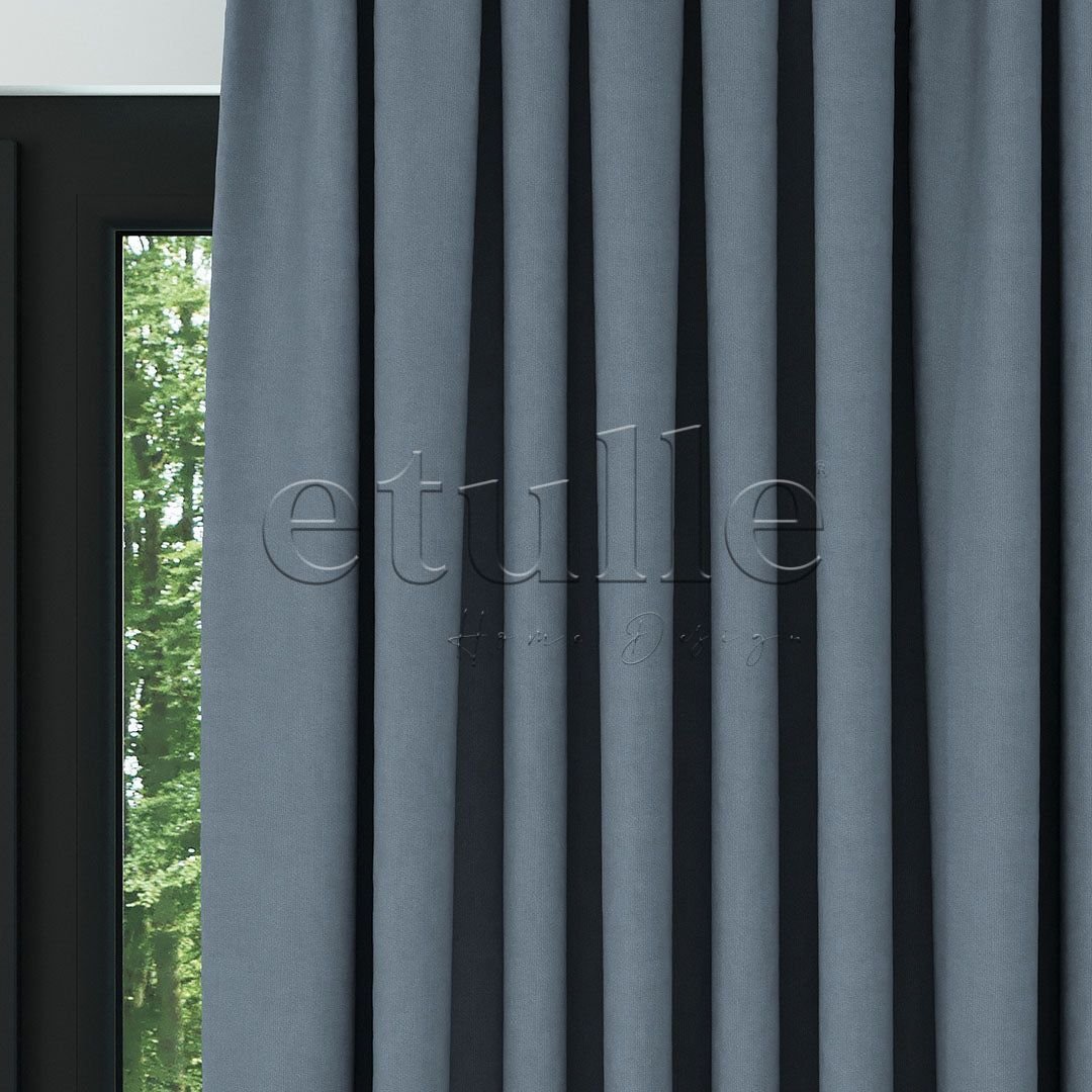 Mavi Mat Fitilli Kadife Fon Perde | Elvey