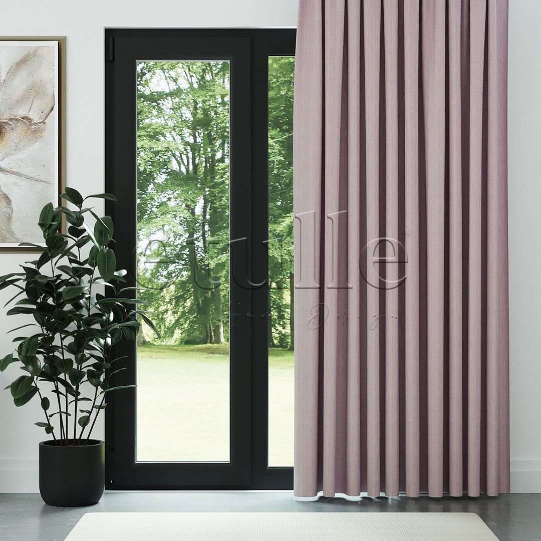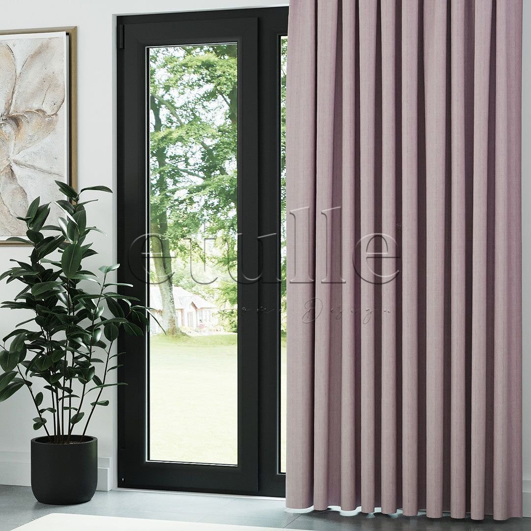 Pembe Keten Desen Efekli Dökümlü Fon Perde | Ezri