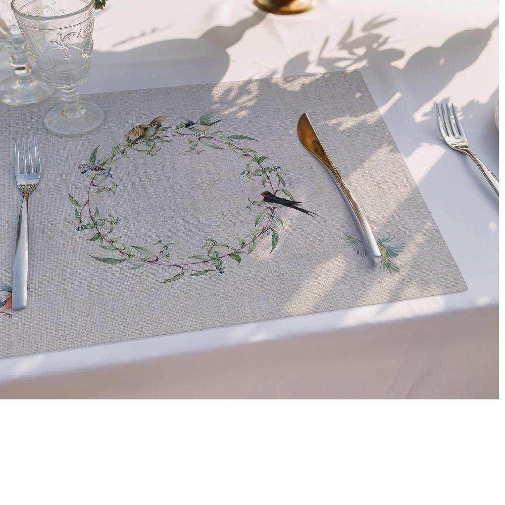 Romantik Kuş ve Çiçek Desenli Amerikan Servis – 4’lü Zarif Sofra Takımı (30×50 Cm)