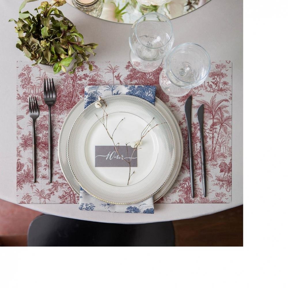 Saklı Bahçe Temalı Kırmızı Amerikan Servis Takımı – 4’lü Set (30×50 cm)