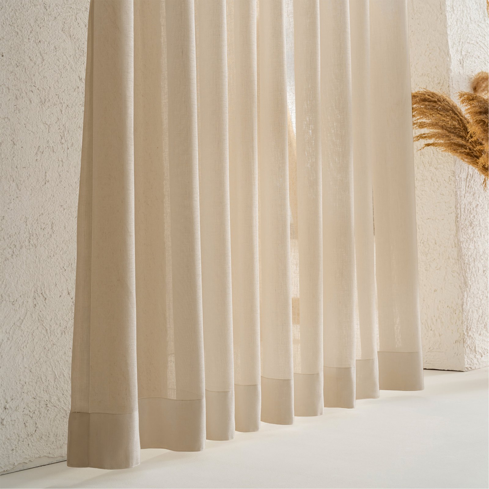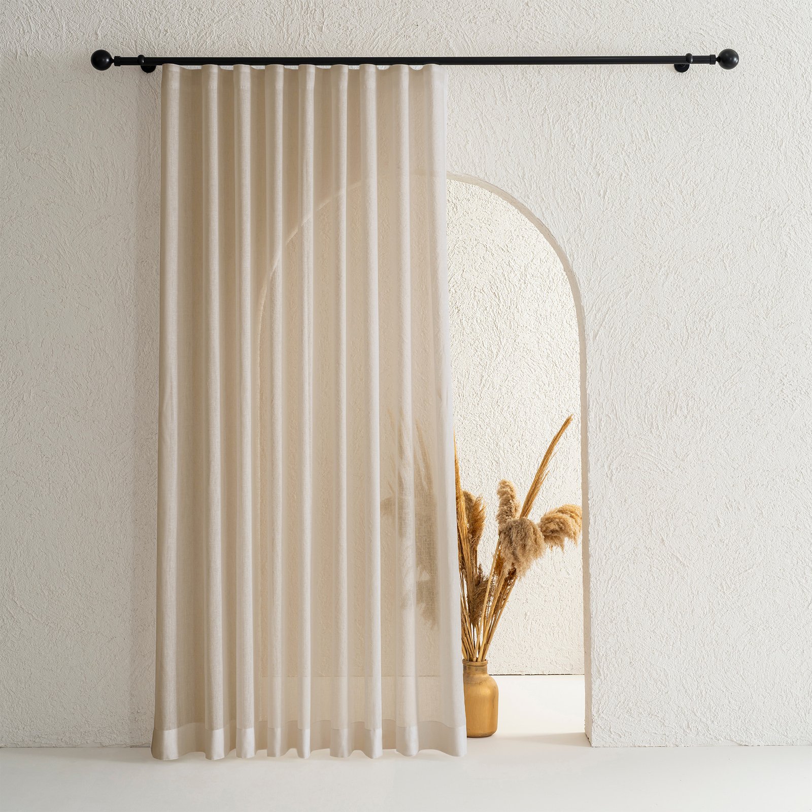 Minimal çizgileri, keten hissi veren dokusu ve zamansız beyaz tonu ile Bej Foldet Keten Desen Tül Perde | Calvora, evinizde sade şıklığı ve doğal ışık dengesini bir arada arayanlar için ideal bir tercihtir.
