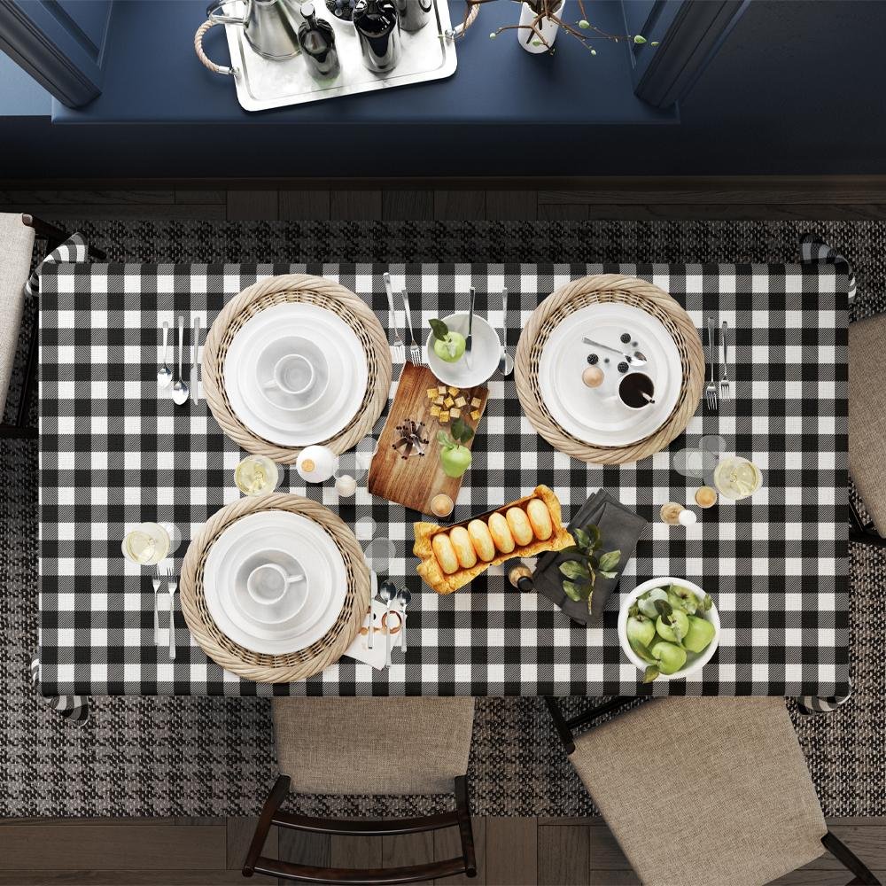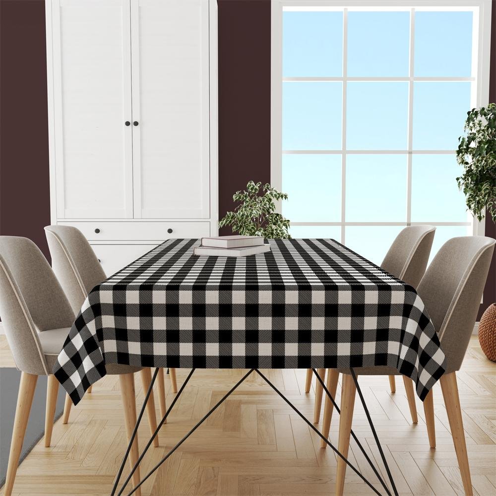 Siyah-Beyaz Kare Masa Örtüsü 160x220CM