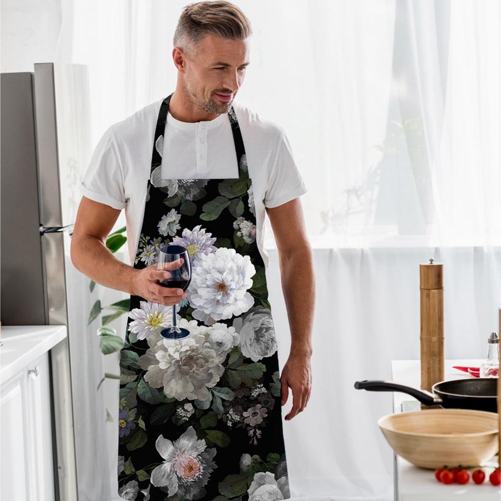 Siyah Çiçek Tasarımlı Mutfak Önlüğü – AP100