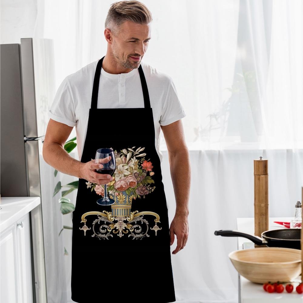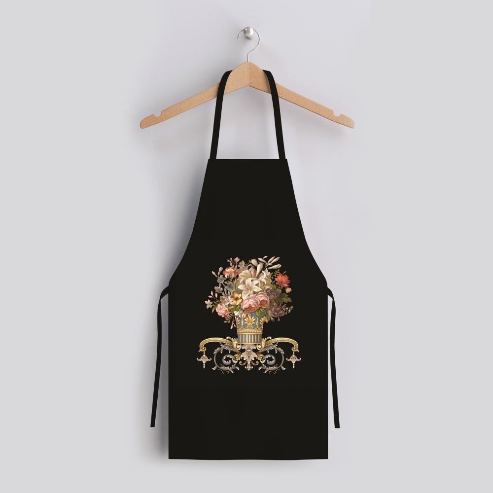Siyah Figüratif Çiçek Mutfak Önlüğü – AP111