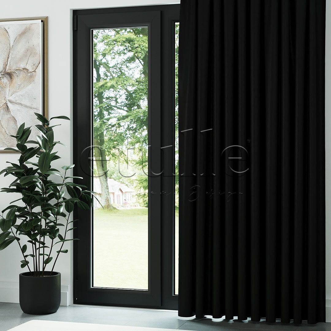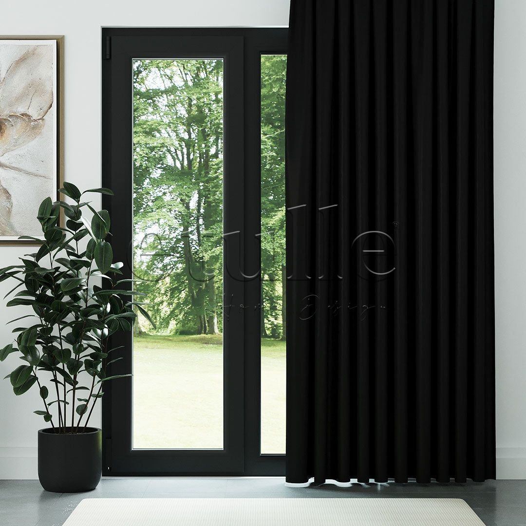 Siyah Hasır Keten Karartma Fon Perde | Bonita