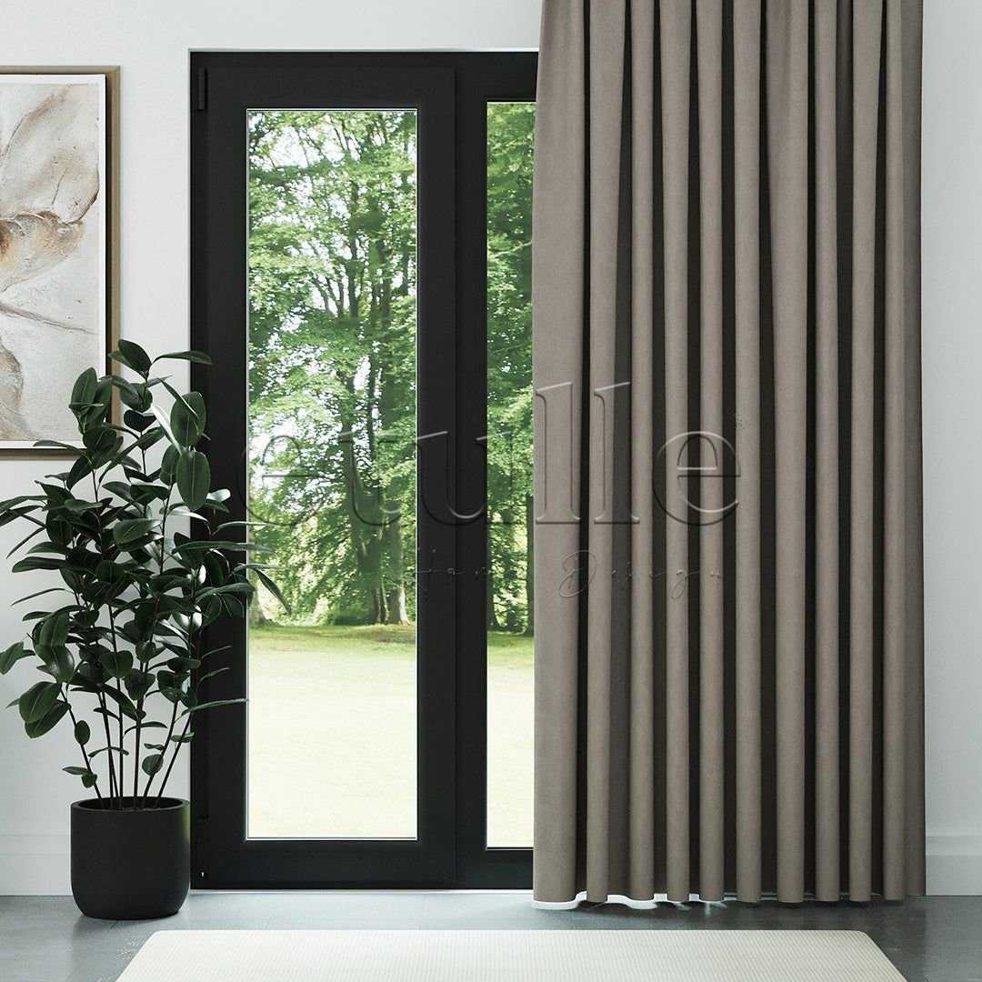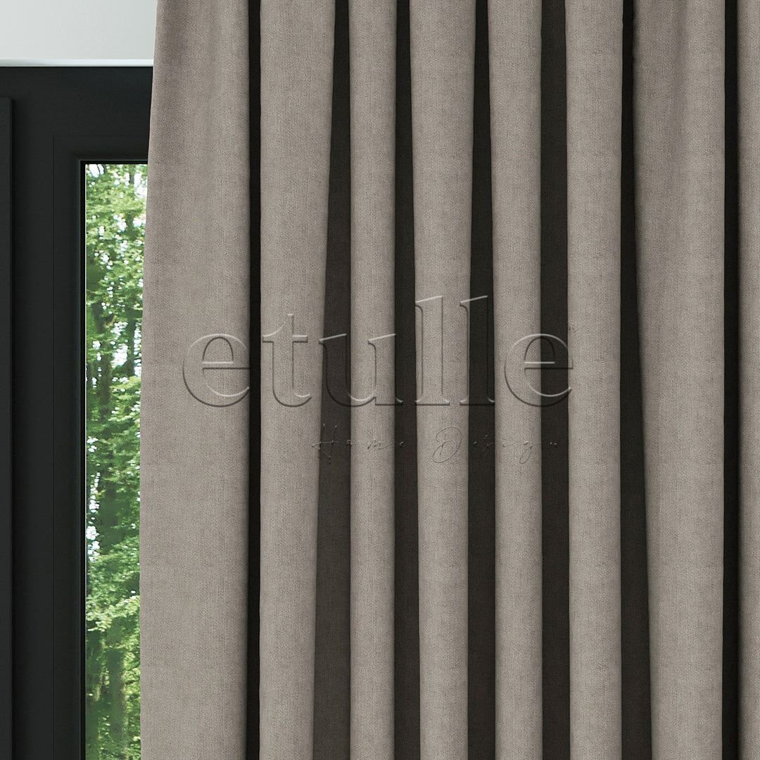 Taş Rengi Mat Fitilli Kadife Fon Perde | Elvey