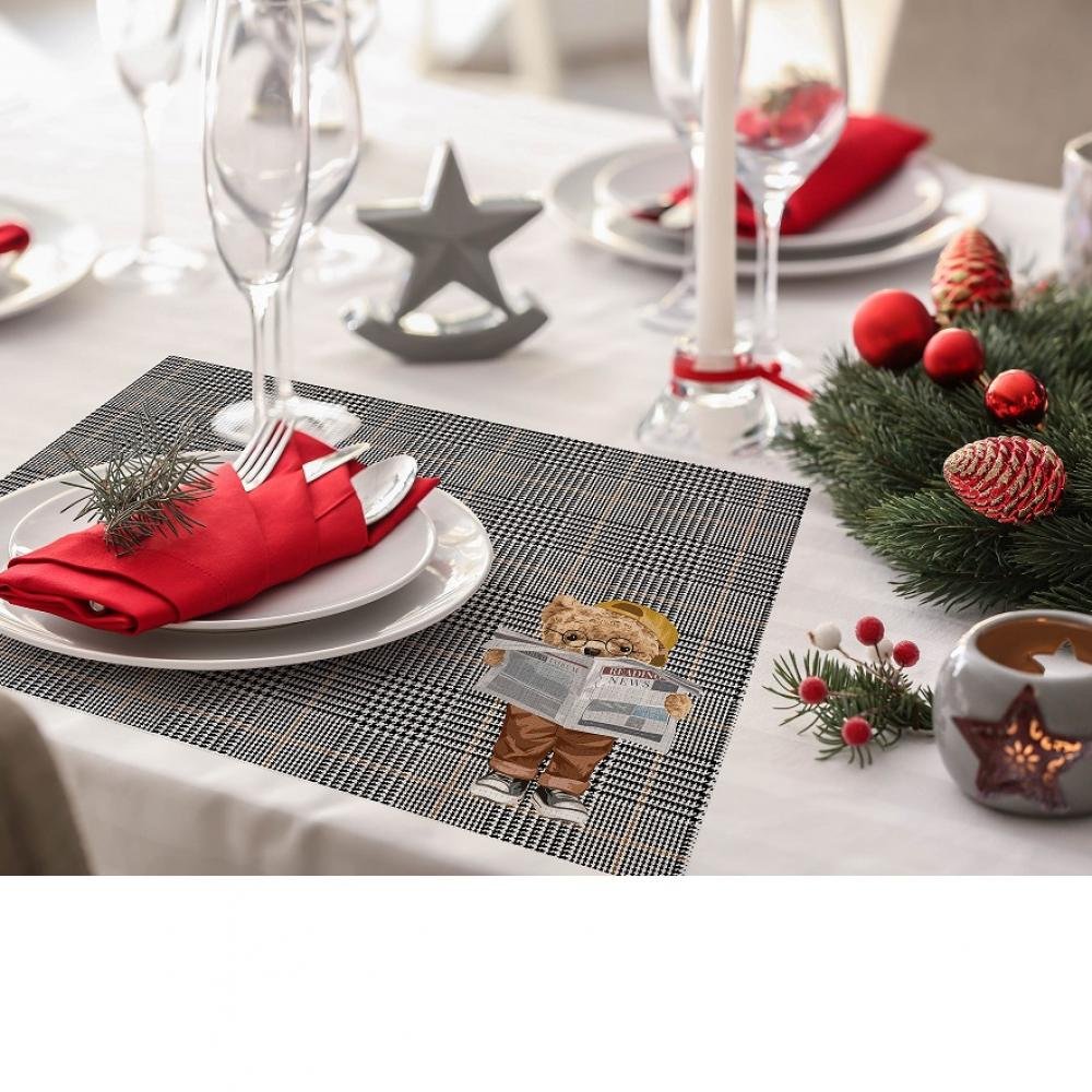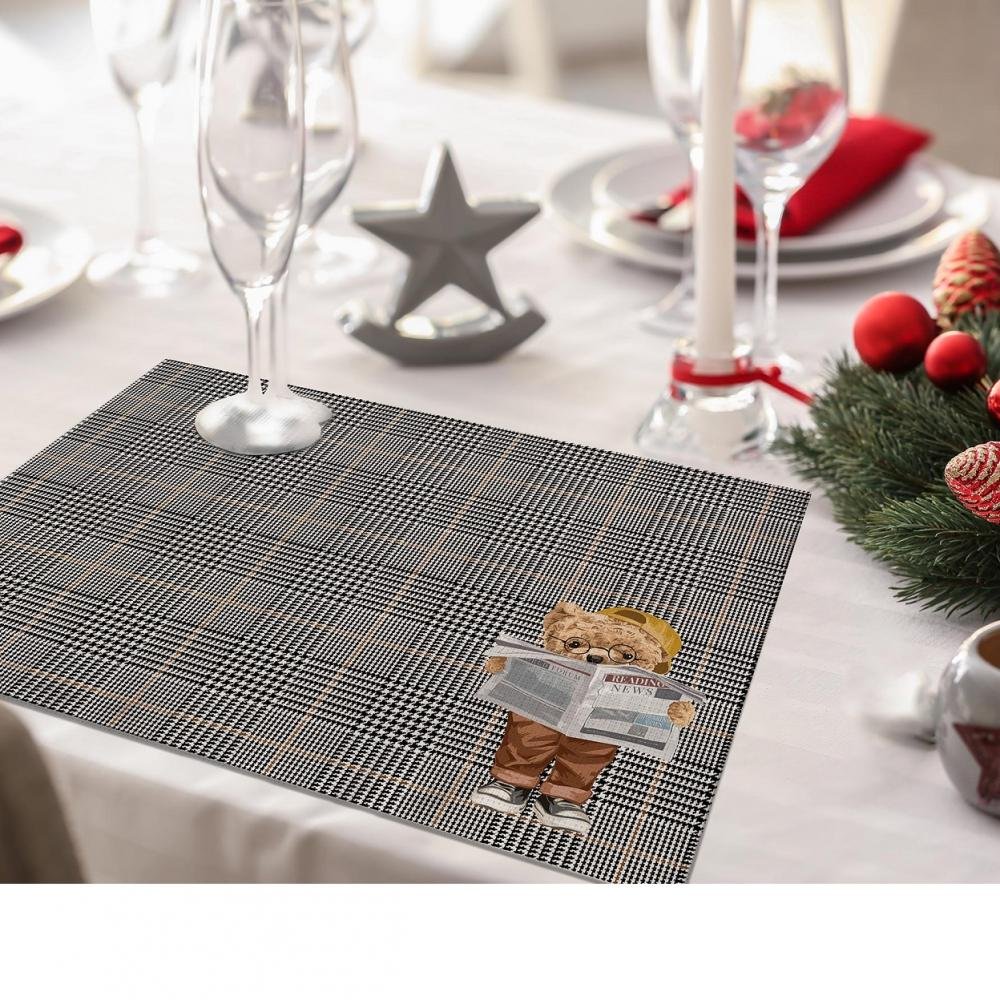 Teddy Gazette Ekose Desenli Ayıcık Baskılı Amerikan Servis – 4’lü Set (35×50 cm)