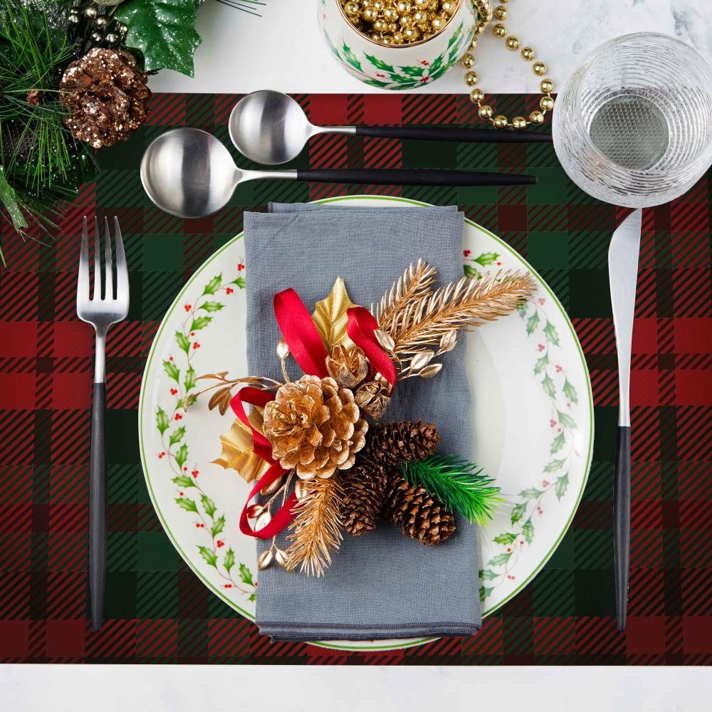 Yeni Yıl Dekoru 4’lü Amerikan Servis – Ekose Kırmızı Yeşil Geyik Desenli – 4’lü (30×50 cm)