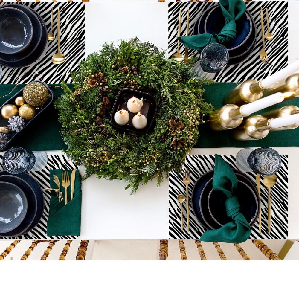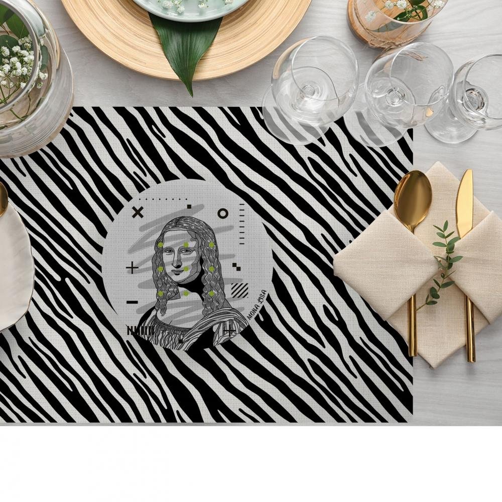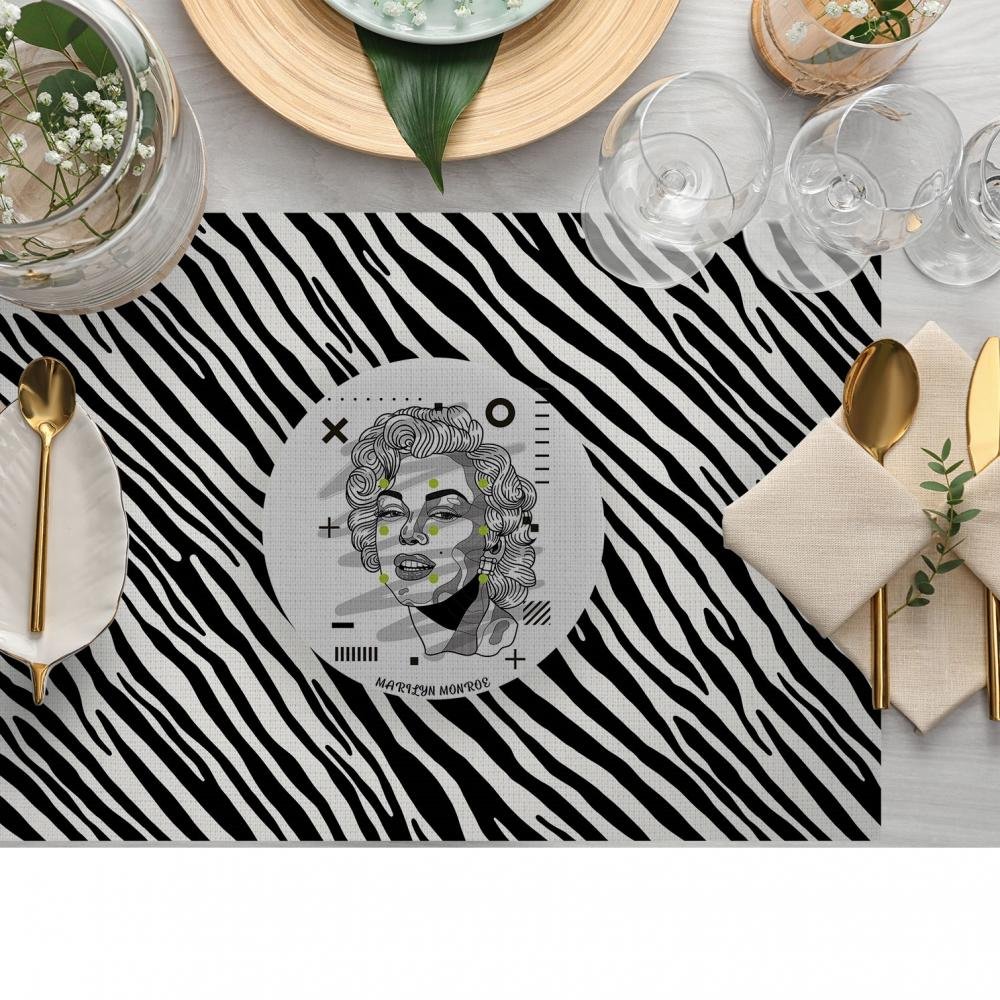 Zebra Desenli İkonik Yıldız Desenli Sanat Baskılı Amerikan Servis – 4’lü Retro Set (30×50 Cm)